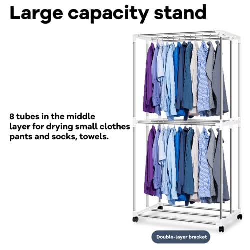 - Indoor Electric Dryer: The dryer is the perfect solution for indoor laundry drying. If drying takes too long, whether due to cold weather or the needs of a large family, this indoor electric clothes dryer is the perfect appliance to speed up the drying process.