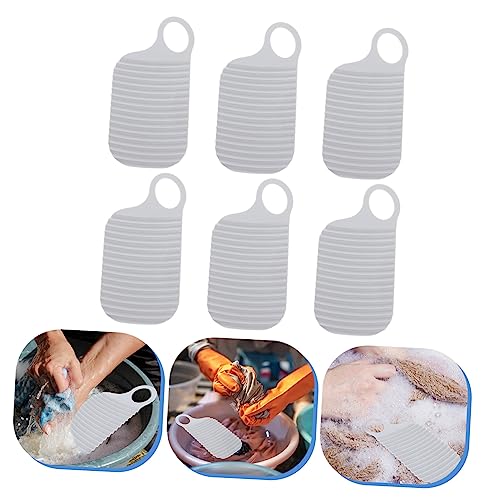 FOMIYES Mini Portable Washboard 6pcs Set with Hanging Hole, Small Stripe Texture Laundry Scrubbing Board for Travel and Hand Washing Clothes, Convenient Cleaning Tool for Household Use