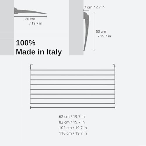 • ▶️ Aluminum and Stainless Steel: Long-lasting and weather-resistant: The Foxydry Fold clothes drying rack endures over time and withstands weather elements such as salt, rain, wind, and sun. Designed and made 100% in Italy, it is entirely crafted from aluminum and stainless steel. These materials, naturally durable, ensure longevity and reliability, protecting the wall-mounted clothes rack from weather conditions and preventing rust.