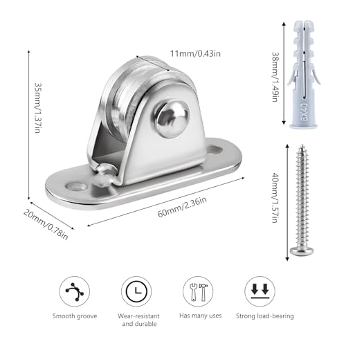 FSHIHINE Metal Pulleys Block 4 Pack Pulley Roller Smooth Wheel with Ball Bearings Deck Pulley Block Drectional Wall Pulley for Sun Shade Sails Wave Sunscreen Canopy Cover DIY Kits for Handling Moving