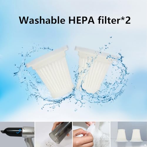 - 🧼Washable 2*HEPA filter:Comes with washable HEPA filters, the handheld hoover ensures long-lasting performance by efficiently trapping dust and allergens. Easy to clean and reuse—no need for frequent replacements.