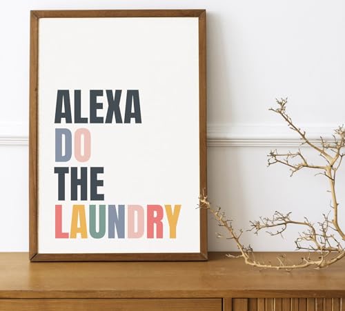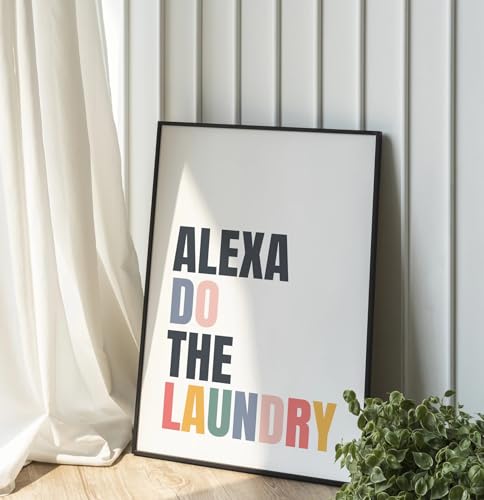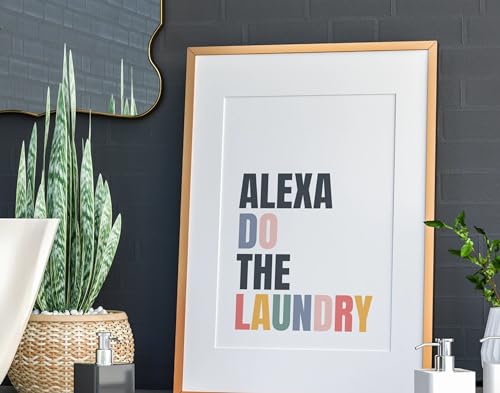 Funny Laundry Room Poster | ALEXA Do The Laundry Sign | A3 Black Framed 45x33cm Size | Humorous Home Poster Wall Art | Funny Typography, Modern Humor