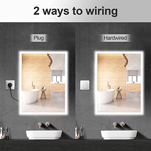 - 💌【Wall Switch Recommended】The LED lighted mirror comes with a long cable, which can be easily hard-wired. We recommend using wall switch to control the mirror light and defogger ON/OFF. The wall switch control can help you better turn the smart backlit mirror bathroom on or off, prevent the insensitive situation of switch smart button when you touch with wet hand, and let you have a better experience.