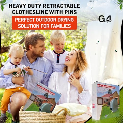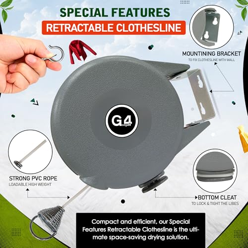 G4GADGET Outdoor Retractable Clothes Line 15m – Heavy Duty Retractable Washing Line with Pins, Space-Saving Wall-Mounted Clothes Dryer for Indoor & Outdoor Use, Grey