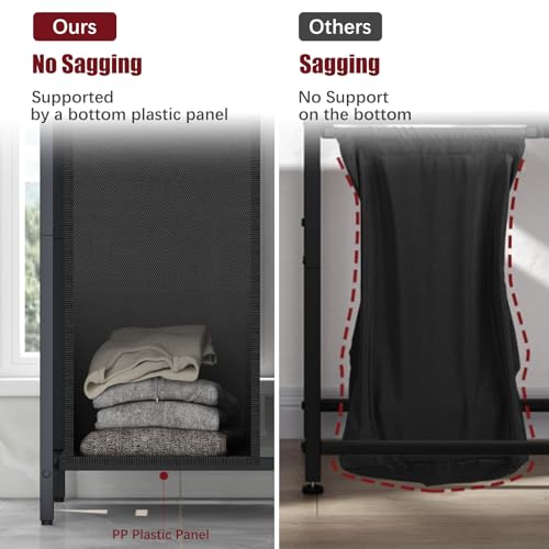 - Sturdy & Stable – This hampers for laundry features a pull-out design and removable washable laundry bags. each liner is made of water-repellent Oxford fabric. Crafted with a 2 cm steel tube frame and MDF panel, this laundry basket supports up to 30 kg on each top shelf.