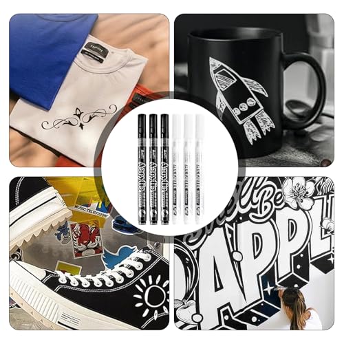 Generic 6PCS Black & White Fine-Tip 1mm Permanent Marker Pen Set, Waterproof, Ideal for DIY, Labeling & Creative Projects