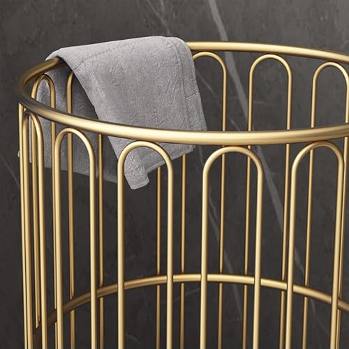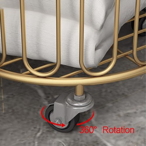 Gold Hamper,Gold Metal Basket with Wheels,Metal Rolling Laundry Basket Cart, Yoga Mat Storage Rack,Wire Laundry Basket with Wheels,Iron Ins Bathroom Dirty Clothes Basket Toy Storage Dirty Cl