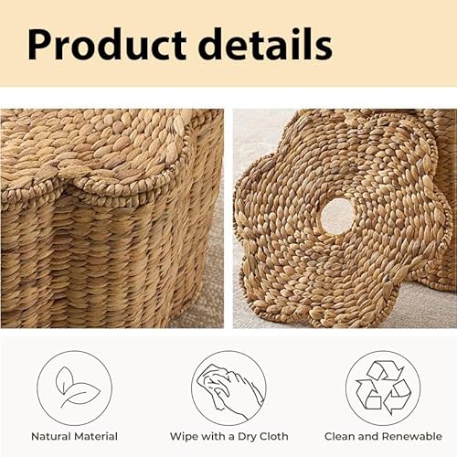 GRUGOODS Flower Wicker Laundry Hamper Basket with Lid 50L Hand-Woven Natural Water Hyacinth Rattan Baskets Home Decor and Organization for Living Room Laundry Play Room