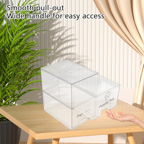 Gzsekken Laundry Pods Storage Container with Lid,2 Pack Laundry Storage Containers for Washing Pods and Dryer Sheet,Clear Laundry Drawer Organiser for Powder, Detergent, Scent Booster Storage