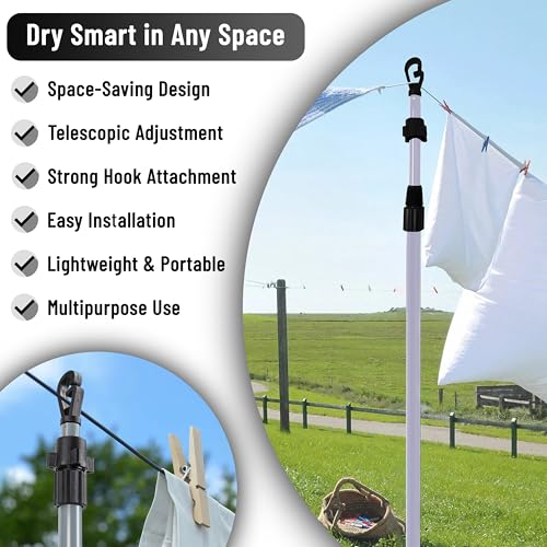H-line 2 x 2.2m Heavy Duty Line Props Telescopic Washing Line Clothesline Extending Clothes Pole Support Home Garden Dry Drying Airer Galvanised Laundry Extenedable Poles