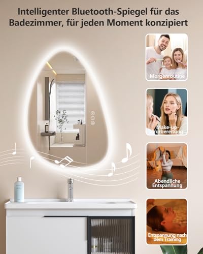 Habison Led Bathroom Mirror with Lights, 550x800mm Asymmetrical Light Bluetooth Mirrors with Anti-Fog, IP44 Waterproof,3 Colors Dimmable,Led Mirror with Memory Function, HD Glass Smart Mirrors