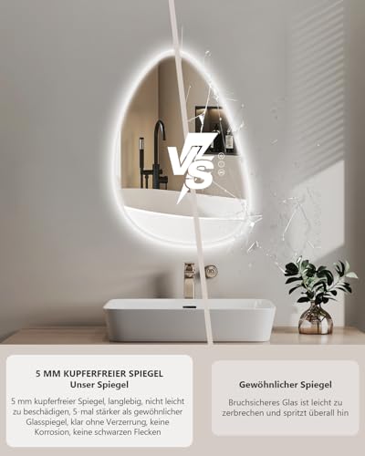 - High Lumen LED Light Strip, IP44 Waterproof: The anti-fog bathroom mirror ultra-high density led light strip, high lumen, IP44 waterproof, and a service life of up to 30,000 hours. The brightness of our anti fog mirror for bathroom is 3 times or more than other illuminated mirror, high quality, durable and energy-saving