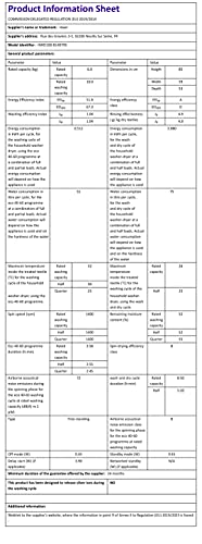 - This washer dryer, using the washing cycle only, is in A class. In compliance with the New Energy Label and comparing with the G class, reduces consumption by up to 51%, saving energy, money and protecting the environment.