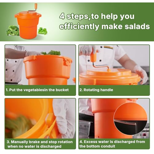 - 【Structural Advantages】vegetable dehydrator spin dryer,304 Bearing of Shafts,strong nd durable.Have brake device,manually brake and stop rotation when no water is discharged,Featuring Non slip handle and Built in water pipe,pipe for water flowing insidenoneed pouredout manually