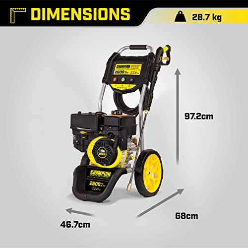 hampion Power Equipment Petrol Pressure Washer 100382-196cc 6.0HP Engine, 2600 PSI 179 Bar Pump, 3 Quick Connect Nozzles and Storage – Jet Wash, Patio, Car, Driveway & Gardens