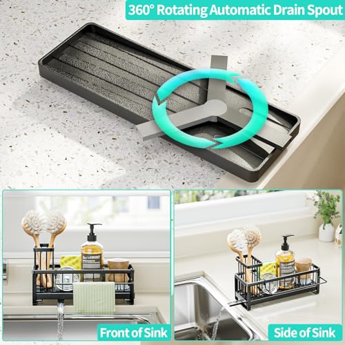 • [Efficient Drainage Design of Sink Organizer]: 360° Rotatable drainage Pipe of sink caddy ensures smooth water flow directly into the sink, keeping your countertop dry and tidy. The detachable design of kitchen tidy organiser allows for easy cleaning, maintaining a hygienic and organized kitchen