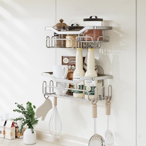 HapiRm Shower Caddy with 11 Hooks, Shower Shelf with Razor Holder, Soap Dish, Towel Hook Bathroom Organiser for Bathroom Storage and Kitchen Accessories Stainless Steel,3 Sticker,2 pcs