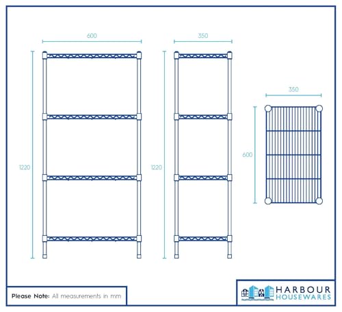 Harbour Housewares 4-Tier Shelving Unit – 122 x 60 x 35cm – Black 4 Shelf Wire Storage Unit with Adjustable Shelves & Levelling Feet Free Standing Garage Storage, Kitchen Organisation Wire Rack