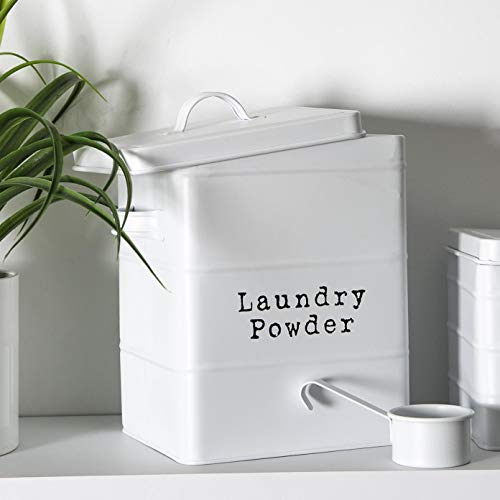 Harbour Housewares Washing Powder Storage Container Tin – Matte White – Steel Vintage Industrial Under Sink Storage Caddy Cupboard Organiser for Laundry Detergent Pods, Dish Washer Tablets