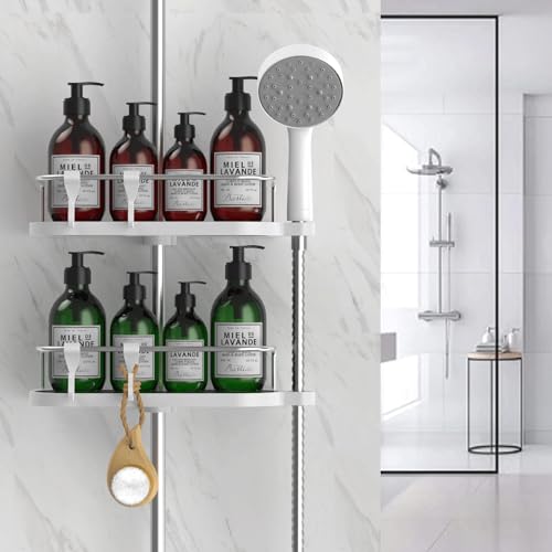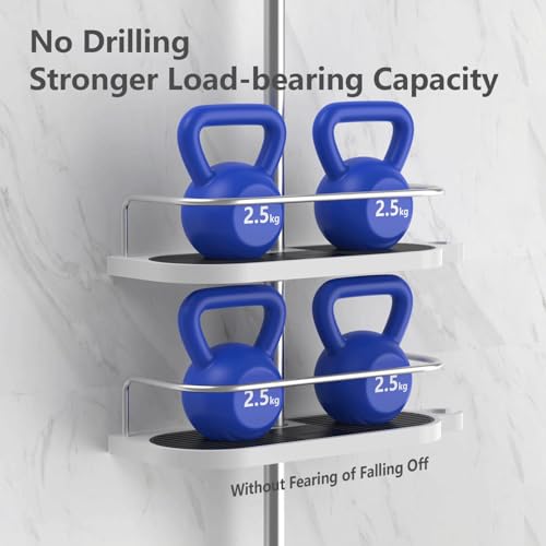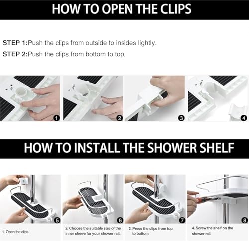 - No Drilling Shower Shelf: Install shower shelf on your shower rod, no need to drill holes on the wall (Note: The shower shelf only fits round shower rods, not square ones)