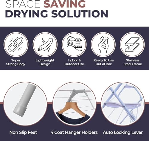 - Benefit – With this spacious HH Home Hut Clothes Airer, you can easily dry your clothes indoors, saving money by reducing the need for a tumble dryer. Its foldable winged design makes it easy to store, while its durable construction ensures it can handle heavy washing loads. Perfect for drying clothes in any indoor setting.