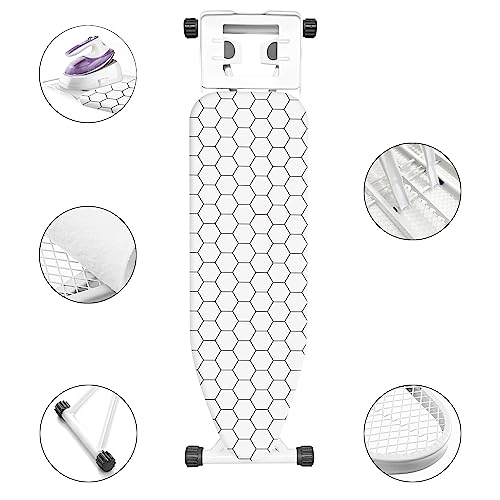 Hibtn Ironing Board, 110 x 35cm – T Leg Design Folding Non Slip Adjustable Height 85-92cm Lightweight Iron Board Rack, Black and White Stripes