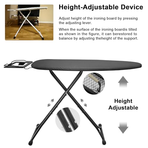 - 【Safety】Adjustable Height: 85-92cm There are 4 Leg Design protective non slip/scratch caps on the feet for added safety , you can stand comfortably at the board while ironing.