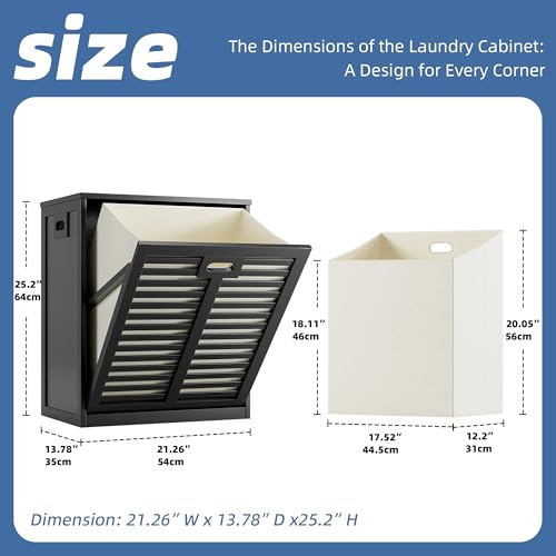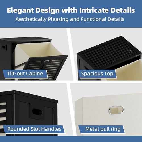 HITNET Bamboo Tilt-Out Laundry Hamper Cabinet with Pull-Out Removable Bag – Freestanding Hidden Clothes Basket with Metal Handle (Black)