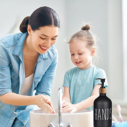 Hniuyun Glass Soap Dispenser Set of 2, Glass Soap Dispenser Bottle with Pump, 16 Oz Refillable Liquid Hand Jar Dispenser for Bathroom, Countertop, Kitchen, Laundry Room (Black)