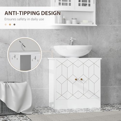 HOMCOM Under Sink Bathroom Cabinet, Under Sink Cabinet with Adjustable Shelf and Open Compartment for Basin with or without Pedestal, 60 x 30 x 60cm, White