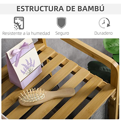 HOMCOM Bamboo Laundry Basket with 2 Pull-out Bags, Laundry Hamper with Shelf for Bathroom, Bedroom, Laundry Room – Grey