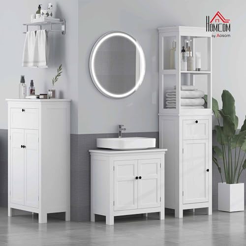 HOMCOM Under Sink Bathroom Cabinet, Freestanding Bathroom Sink Cabinet with Adjustable Shelf for Wall-Mounted Sinks, 60 x 30 x 60cm, White