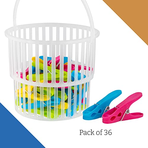 HomeSmith – Soft Grip Pegs With Basket – Soft Grip Clothes Pegs For Washing Line – Colourful Clothes Pin in Peg Basket With Handle – Pack of 36, HSmith-115