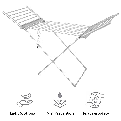 - Fast & Efficient Heated Drying: 20 heating tubes and fold-out wings speed up drying for all types of clothing, from delicate items to large sheets and towels. Ideal for use when outdoor drying isn’t possible.