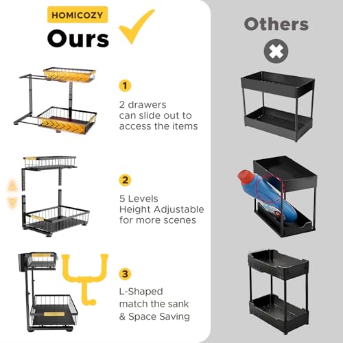 - 【Robust and Stable】Homicozy kitchen under sink storage is made of high-quality thickened metal material (not plastic). The surface is rust-proof, beautiful and stable, not easy to deform, and longer using life.The frame structure is strong and has strong load-bearing capacity, which can carry 30 kilograms. You can trust that your investment will pay off for years to come!