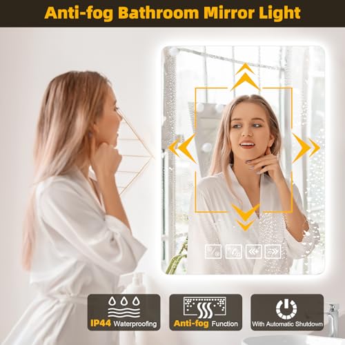 - 【Anti-Fog & IP44 Waterproof】 The led mirror bathroom is equipped with a demister that quickly heats up the mirror surface, preventing fog and ensuring a clear reflection. IP44 waterproof rating ensures safe lighting in wet bathroom environments.
