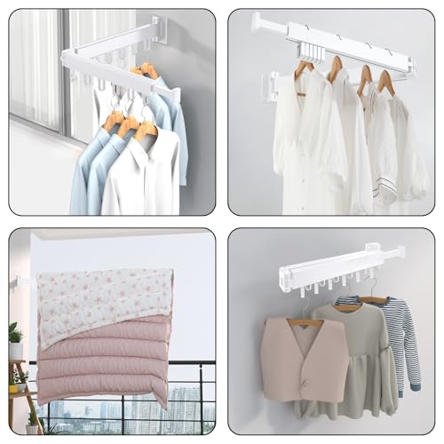 • 【Space Saving Design】The Adjustable Clothes Drying Rack Features A Retractable And Collapsible Design, Allowing You To Fold It Against The Wall When Not In Use And Open It Fully When Needed. It Can Also Be 360° Rotated To Dry Clothes Out of The Window for More Sunlight, Maximizing Your Room Space And Saving Space.