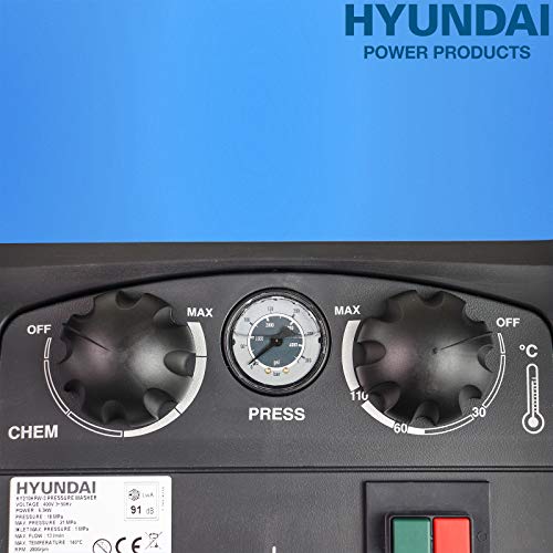 Hyundai 2600 PSI Hot Water Pressure Washer, 6.3 kw, Electric 3- Phase Motor, Power Washer, Portable Pressure Washer, 140°c Water Temperature, 3 Axial Cylinder Pump, Blue, HY210HPW-3