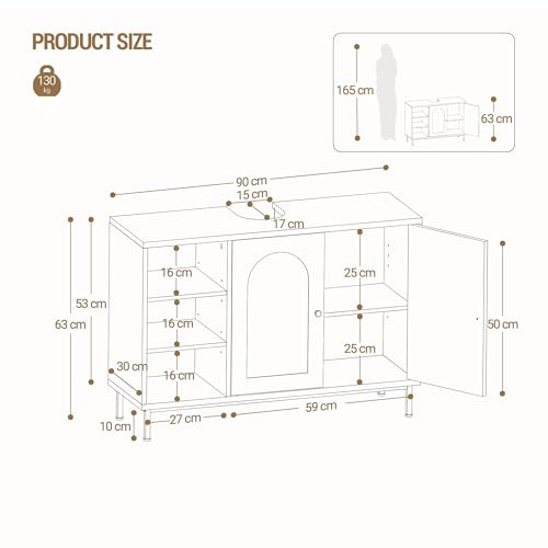 - 【Adjustable Shelf 】This under sink cabinet features 2 adjustable shelf with three different heights, allowing you to adjust the storage space to suit your needs. The base plate is 10cm off the floor for daily cleaning.