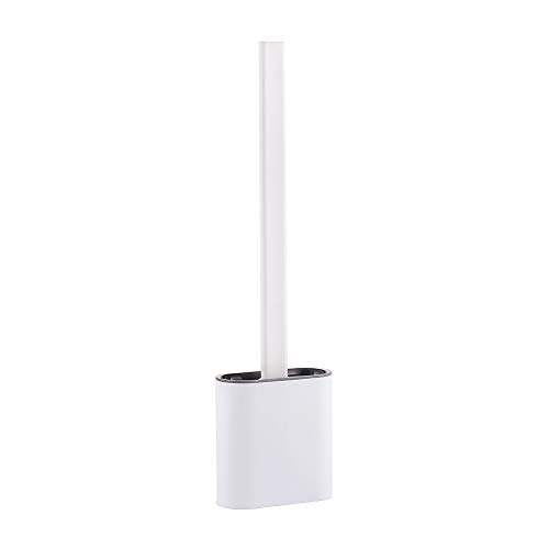 Ibergrif M34151-3 Toilet Brushes & Holders, Deep Cleaner Silicone Toilet Brush, Flat Toilet Brush with Long Handle, Quick Drying Loo Brush and Holder for Bathroom, Base Flooring Wall Mounted, White