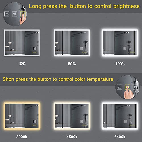 - 【Dimmable & Memory Function】 Full range dimmable, the led bathroom mirror will memory the last mode you use. Support wall switch control on/off.