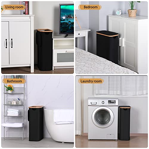 iEGrow Laundry Basket, 60L Tall Washing Basket with Lid and Handle, Slim Foldable Laundry Hamper with Removable and Washable Inner Bag, Narrow Laundry Baskets for Bedroom Bathroom Laundry room (Black)
