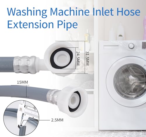 ilauke 2.5m Washing Machine Hose Extension, Universal Cold Water Fill Hose, Grey, Plastic, 3/4 inch, 1 Pack