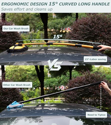 - 🚙【15° Bending Retractable Car Washing Brush】 Our car cleaning brush is designed with a 15° retractable pole, allowing you to wash your car with less effort. The 3-section telescopic pole can be adjusted from 50-102cm in length, you can adjust the different lengths with the reinforcement clips to clean your car without worrying about not cleaning properly and avoiding the fatigue of bending down.