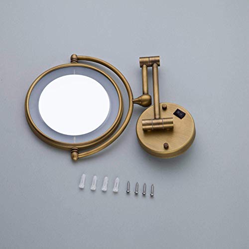 - JERUI Antique Brass LED Light Makeup Mirrors 8"Round Dual Sides 3X /1X Mirrors Bathroom Cosmetic Mirror Wall Mount Magnifying Mirror