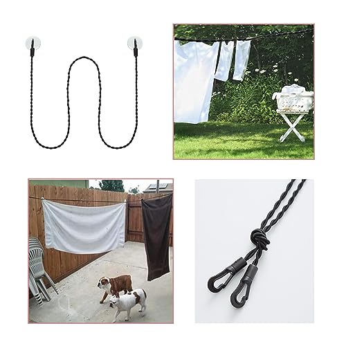 - JIANYH 2 PCS Travel Washing Line, Extendable Clothes Line With Hooks & Suction Cup Attachments for Camping, Laundry Drying Outdoor (Black)