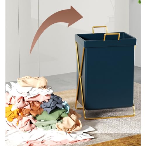 JITEM Blanket X-Frame Collapsible Laundry Basket w/Leather Bag Sorter Organizer Black/Gold Metal Frame Laundry Hamper Luxury Folding Dirty Clothes Basket for Dorm Apartment Toy Washing Bin