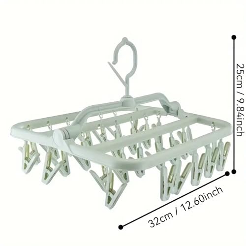 - Versatile Drying Solution: This collapsible laundry hanger features 32 sturdy clips, perfect for drying socks, undergarments, shoe inserts, infant garments, gloves, and hats.