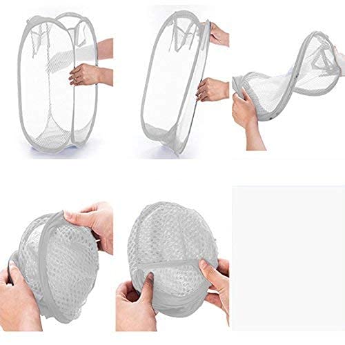 JJOnlineStore Foldable Pop Up Mesh Collapsible Washing Laundry Basket Bag Bin Hamper Toy Tidy Storage Organiser Organizer (White)