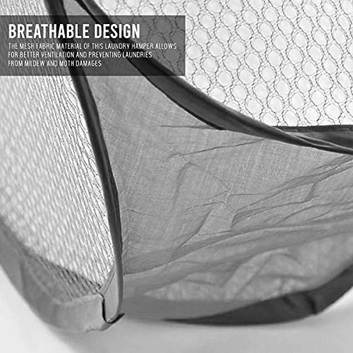 • ✅ BREATHABLE DESIGN – The mesh fabric material of this laundry hamper allows for better ventilation and preventing laundries from mildew and moth damages. With maximum air circulation, clothes that are keep in our pop up laundry baskets are quick-drying, fresh and no unpleasant odours.